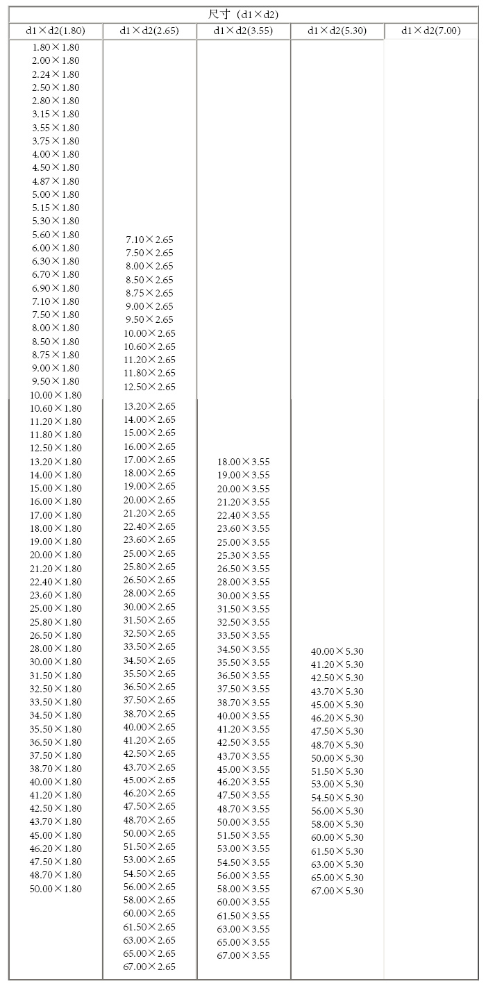 形圈内径和线径公差
