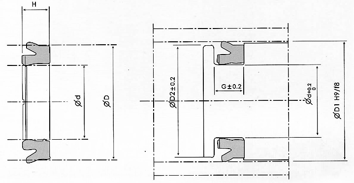 KNAP:材质为耐磨NBR,为外径密封,承载单侧压力。(活塞密封)