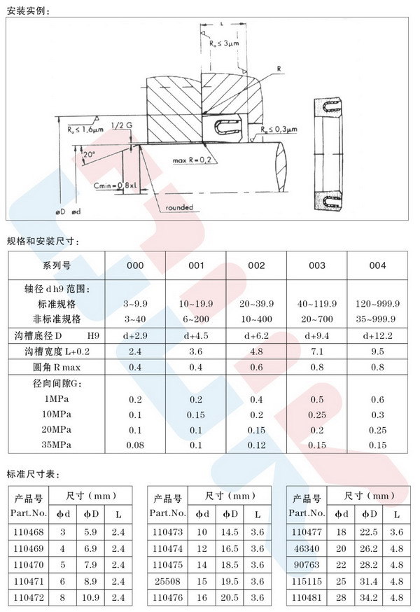 四氟轴用U形圈是以金属张力弹簧作为预压力的U形密封圈,可用于活塞杆作单向作用密封,由于金属张力弹簧作为预压力持续作用于密封唇上,保证即使在零压工况下也不会产生泄漏。以及聚四氟乙烯突出的材料特征,在任何运动速度下,即使极轻微的运动速度也不会产生爬行现象。因此,适宜用于各种工作介质和高温(250度)高速(15M/S)和高压(45MPa)工况下获得最佳的密封性,并具有较低的摩擦力,零压、低速下无爬行,良好的干摩擦运动性等特点。